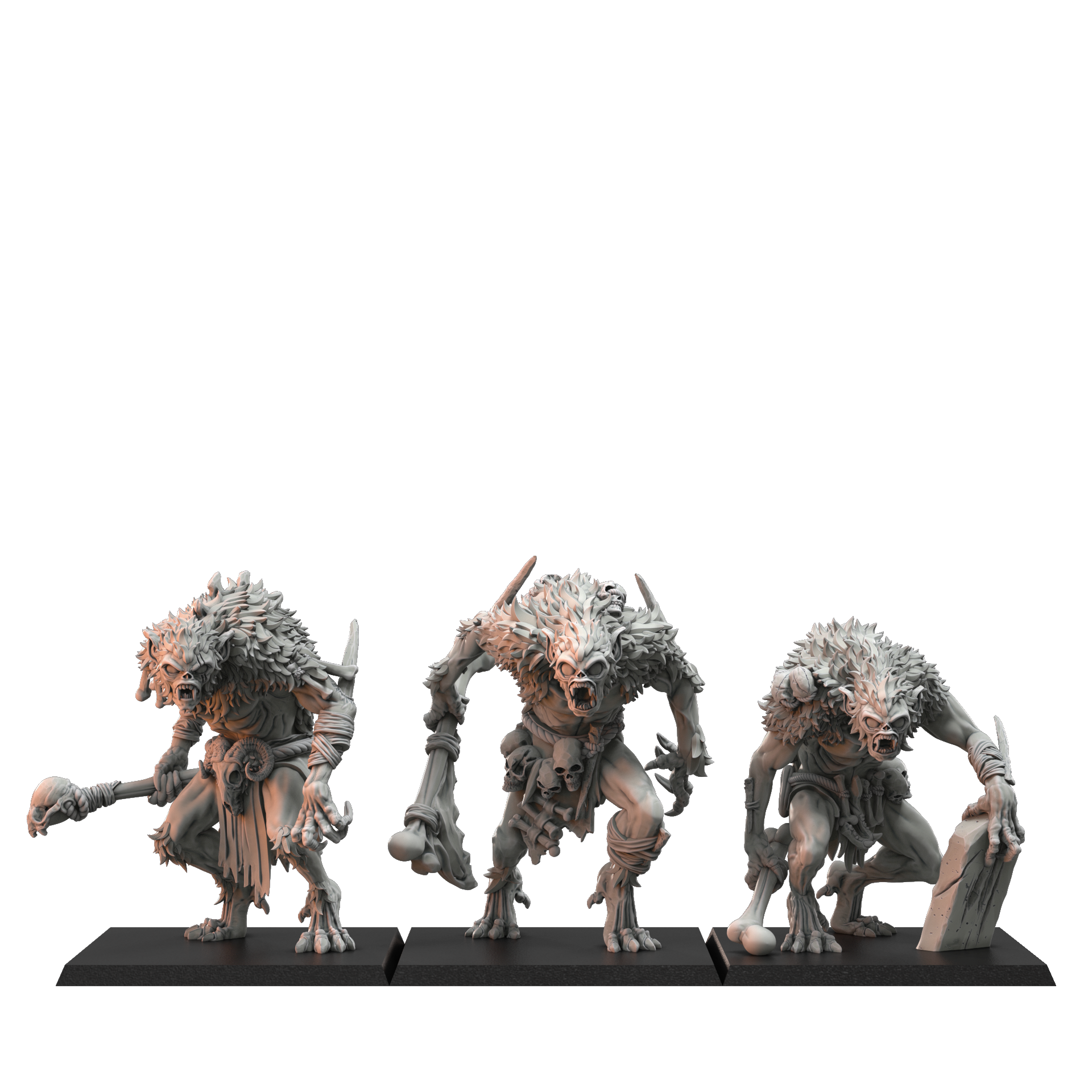 Ghasts is a set of 3 ravenous undead horrors stalking the battlefield, from the Vampire Army range by Crab Miniatures. Printed in high-quality resin on professional-grade printers. Ships unpainted and unassembled, ready for painting and basing.