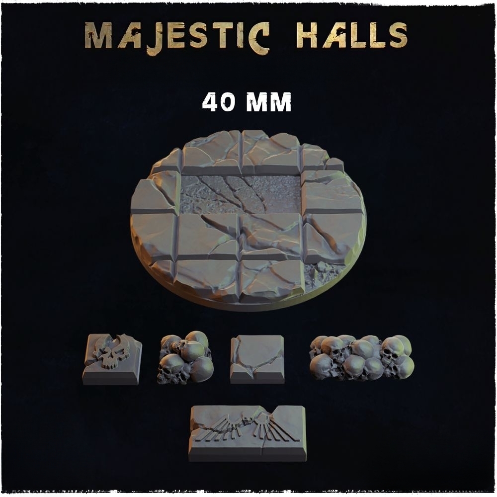 Scenic terrain bases from the Majestic Halls range by Zabavka Workshop. Sculpted bases in 4 sizes from 50mm to 130mm, designed for tabletop wargaming and display.