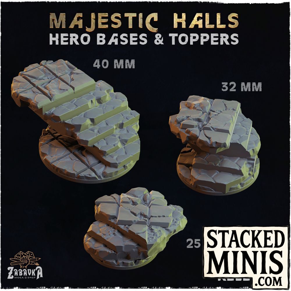 Character display bases from the Majestic Halls range by Zabavka Workshop. Available in 25mm, 32mm, 40mm for standard hero and character model slots.