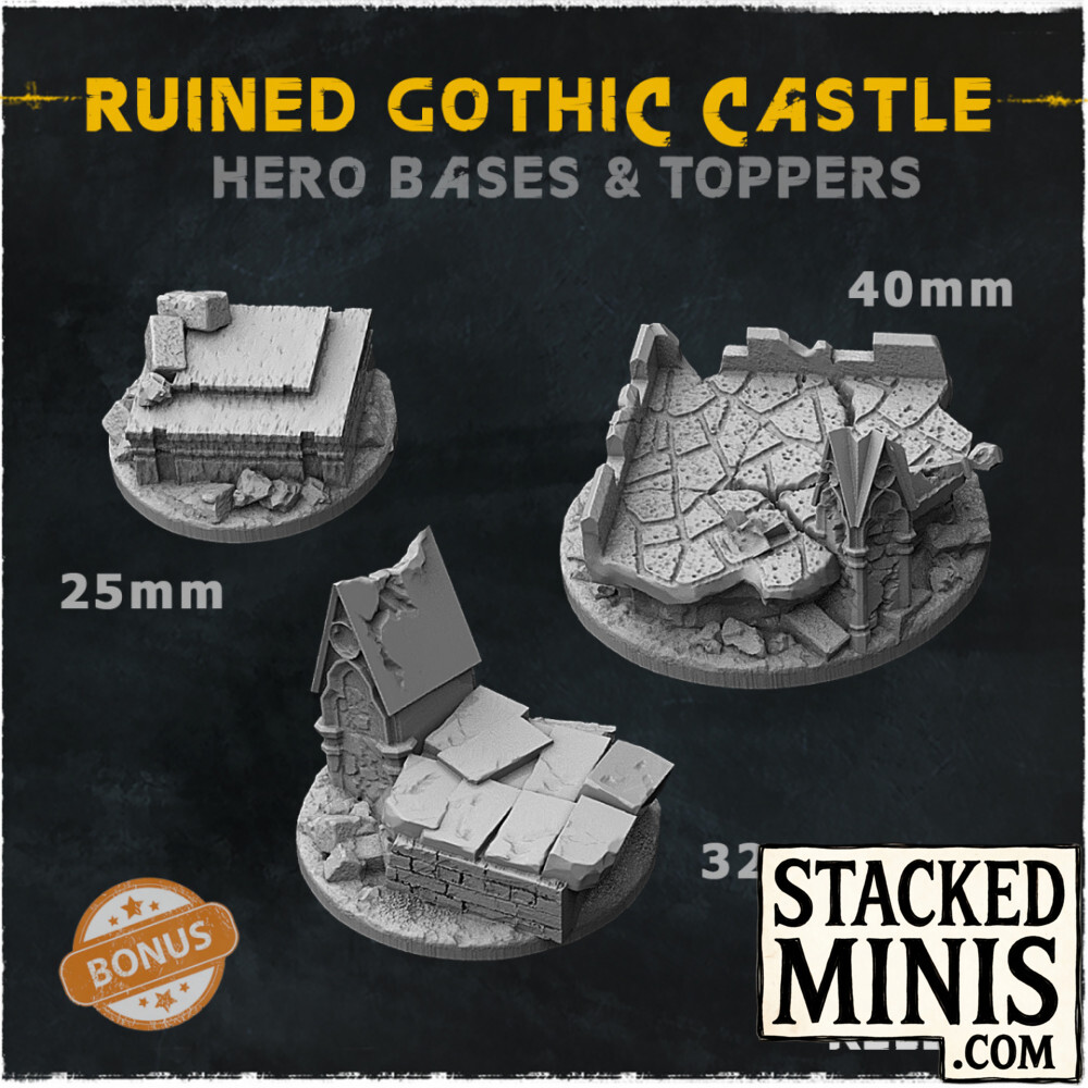 Character display bases from the Ruined Gothic Castle range by Zabavka Workshop. Available in 25mm, 32mm, 40mm for standard hero and character model slots.