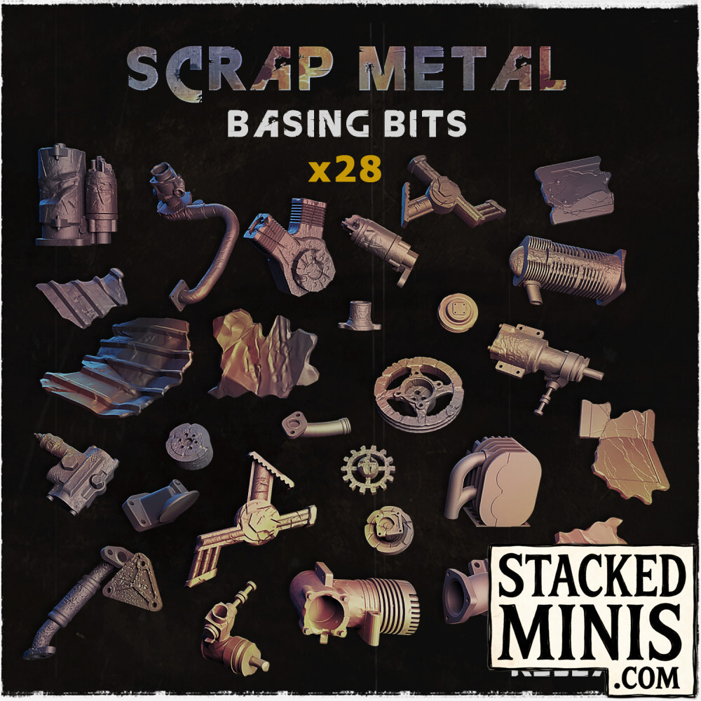 Basing Bits terrain pieces from the Scrap Metal range by Zabavka Workshop. 28 unique pieces in the set, designed for tabletop terrain and basing.
